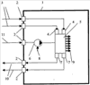 Внешние электрические информационные сигналы 3 проходят через входные герметичные разъемы 2 из внешней среды и попадают внутрь корпуса 1 с рабочей средой на электропневматические преобразователи 4 и превращаются в пневматические сигналы, управляющие по проточным входным каналам функциональных струйных элементов СУ 5. Выходные пневматические сигналы СУ через пневмоэлектрические преобразователи 7, герметичные разъемы 2 в виде электрических сигналов 10 приходят к внешним приемникам, например к электрическим исполнительным устройствам.