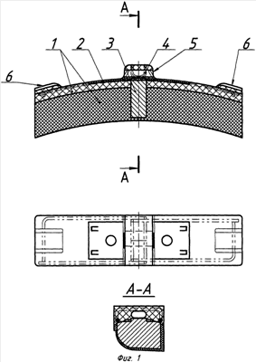 На фиг.1 представлена тормозная колодка железнодорожного транспортного средства, где