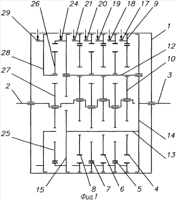 На фиг.1 изображена кинематическая схема планетарной коробки передач,