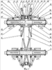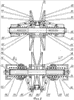 Крутящий момент, приложенный к ведущему валу 1 (фиг.1), через опорные втулки 21 и 22, направляющие 38 передается на диски 4 и 5 с каретками 10.