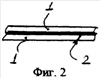 На фиг.2 теплоизоляционное изделие состоит из двух подложек 1, между которыми расположено покрытие 2, надежно защищенное от внешних воздействий материалом подложки. Для улучшения теплоизоляции число слоев подложек может быть больше двух.