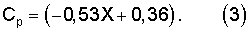 при этом безразмерный коэффициент расхода газа Ср=(-0,53Х+0,36) был определен экспериментальным путем (для жидкой среды – воды) и представлен на фиг.3.
