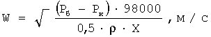 W – скорость жидкой среды на срезе кромки кавитатора, м/с,