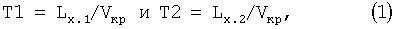 На выходе усилителя 9 записи вырабатываются токовые сигналы, проходят в среду смежных звукопроводов 1, 2 МПП и под магнитом 5, расположенным на искомом расстоянии Lх от отражающей нагрузки 4, возбуждают ультразвуковые импульсы (эф. Видемана). Распространяясь по звукопроводам 1, 2 со скоростью Vкр волны кручения, они испытывают переотражение, считываются сигнальными ЭАП 7, 8 (эф. Виллари), преобразуются усилителями 10, 11 считывания в прямоугольные видеоимпульсы, проходят через открытые логические элементы И 13, 14 и переключают триггеры СВИП 15 (фиг.2в-ж), формируя разностные временные интервалы Т1 и Т2 перемещения Lх объекта. Их размерность находится в прямой зависимости от геометрии продольных волноведущих трактов МПП: