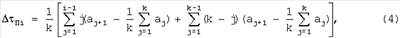 П(1-n),  П(2-n), …,  П(k-n) – погрешность аппаратуры 3 навигации в (k-n) точке измерения при введенной дополнительной задержке навигационного сигнала =n с помощью линии задержки;