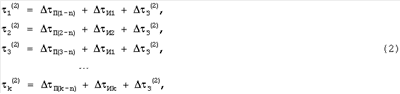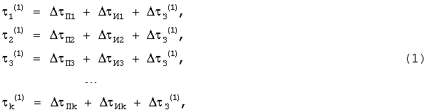 где 1 (1), 2 (1), …, k (1) – суммарная погрешность имитатора навигационных сигналов и аппаратуры 3 навигации в 1, 2, …, k-й поверяемой точке для первого цикла измерений (при нулевой задержке);