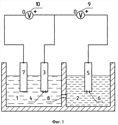 Напряжения на электродах измеряли после 3-минутной выдержки цифровым вольтметром с входным сопротивлением 10 МОм и погрешностью 0,5% от измеряемой величины плюс 0,1 мВ.