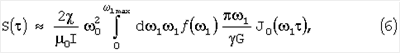 В особом случае, когда функция f( , 1) вблизи резонанса независима от  , что, например, имеет место для каротажного прибора с существенным радиальным градиентом, уравнения (5) и (5а) после интегрирования по  дают простые выражения для амплитуды сигнала, следующего непосредственно за импульсом. Синфазная составляющая или Х-компонента вектора намагниченности в результате интегрирования дает ноль, а Y-компонента или квадратурная (поперечная) составляющая после интегрирования приводится к виду: