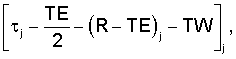 где ТЕ – временной интервал между рефокусирующими импульсами R, j – отклоняющий импульс, TW – время ожидания, i – индекс порядкового номера рефокусирующего импульса и j – индекс порядкового номера импульсной последовательности Карра-Перселла-Мейбума-Гилла (КПМГ) или модифицированной последовательности КПМГ, полученной для одного отклоняющего импульса.