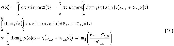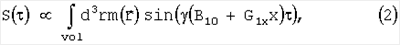 где интегрирование проводится по всему объему образца. Выражение легко интегрируется по координатам Y и Z, и в результате получаем, что сигнал представляет собой синус-преобразование Фурье функции спиновой плотности в проекции на ось X, что можно записать следующим образом: