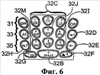 Следующий вариант выполнения компоновки клавиш содержит три ряда, 31, 33 и 35, из пяти клавиш в каждом и содержит клавишу 32 В «пробел» и две функциональные клавиши 32F и 32G, расположенные ниже трех рядов. В первом ряду 31 три средние клавиши позволяют осуществлять ввод букв и цифр, а клавиши по краям позволяют осуществлять ввод букв. Каждая клавиша в первом ряду 31 связана, по крайней мере, с двумя буквенными значениями. Во втором ряду 33 три средние клавиши позволяют осуществлять ввод букв и цифр. Крайняя левая клавиша позволяет осуществлять ввод букв. Последняя клавиша 32D имеет значение ENTER или RETURN. Из-за такого значения указанной клавиши каждой из двух крайних левых клавиш в этом ряду 33 присвоено два буквенных значения, в то время как каждой из клавиш 32I и 32J присвоено три буквенных значения. Например, в этой компоновке клавиша 32J позволяет вводить буквы «G», «Н» и «I», а клавиша 32I позволяет вводить буквы «J», «К» и «L».