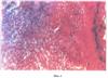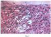 На фиг.3 изображено, что на 10-е сутки опыта вокруг полости абсцесса формируется достаточно выраженная капсула, лейкоцитарная инфильтрация, а количество дегенеративных форм гепатоцитов уменьшается.