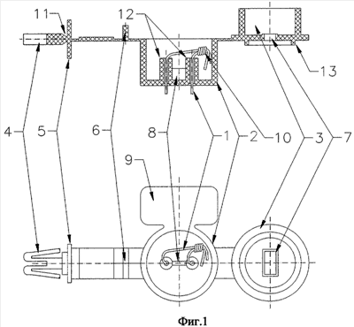 Стенки крышки 3, входящие в полость корпуса 2, защищают узел запирающего элемента 10 и фиксирующий элемент 4 от криминального воздействия.