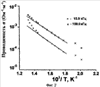 На Фиг.2 представлена характерная кривая температурной зависимости проводимости ( ) на примере Zn0.80Co0.20O при частотах измерительного поля 15,9 и 159,0 кГц.