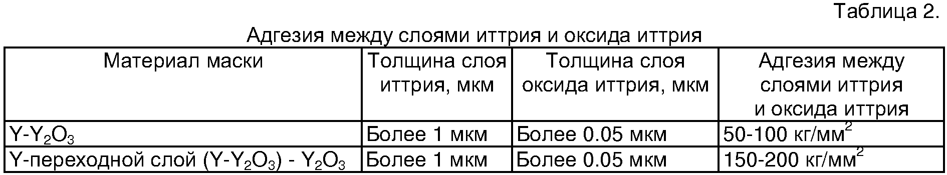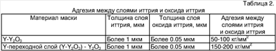 Пленочные структуры Y-Y2O3 и Y-переходной слой (Y-Y2O3)-Y2O3 получались напылением в вакууме методом ВЧ магнетронного распыления на установке Катод-2М. При напылении структуры Y-Y2O3 вначале напылялись пленки иттрия толщиной более 1 мкм в атмосфере аргона при давлении 5·10-3 мм рт. ст., после чего производилось напыление оксида иттрия толщиной не менее 0.05 мкм путем ВЧ магнетронного распыления иттрия в атмосфере из смеси аргона и кислорода (50% кислорода) при давлении 5·10-3 мм рт. ст. При напылении структуры Y-переходной слой (Y-Y2О3)-Y2О3 кислород добавлялся постепенно от 0 до 50%, что способствовало образованию переходного слоя Y-Y2O3, после чего проводилось напыление оксида иттрия толщиной не менее 0.05 мкм. Источники информации 2. Патент РФ №2054747, кл. H01L 21/312. Способ получения рельефа в диэлектрической подложке. Бюлл. №5, 20.02.1996 г. (прототип).