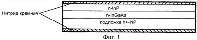 – эпитаксиальную пластину n-InP/n-In0,53 Ga0,47 As/n+-InP покрывают пленкой нитрида кремния, как со стороны эпйтаксиального слоя n-InP, так и со стороны подложки n+-InP;