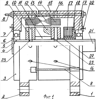 Устройство работает следующим образом. Входной поток воздуха попадает в центральное входное отверстие 21 и далее по отверстиям 24 и каналам 10 диска 9 под действием центробежного эффекта, вызванного кроме действия каналов 10 наличием зубцов 12 звездочки, которые играют роль лопастей, выбрасывается через отверстие 16 в крышках 3 и 15 в окружающую среду. При этом вследствие наличия полого вала обе стороны лобовых частей статора охлаждаются свежим воздухом, а не нагретым, как в генераторах традиционного типа.