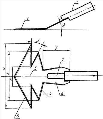 К хвостовой части 6 рабочего органа 1 крепится черенок 2, например, при помощи сварки. Тогда в качестве черенка используется стальная трубка с вырезом или пазом на конце для сварки.