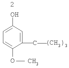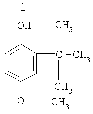В качестве антиокислительного компонента фенольного ряда используют бутилгидроксианизол или бутилгидрокситолуол, или трет-бутилгидрохинон, или 2,2,4-триметил-8-метокси-1,2,3,4-тетрагидрохинолин, а в качестве пищевой кислоты используют лимонную или молочную, или яблочную, или уксусную. Компоненты, используемые в качестве антиокислителя гигиенически безопасные производные фенолов, отличаются большим удобством в обращении. Они идентифицированы по токсикометрическим исследованиям как пищевые добавки и входят в список компонентов, которые рекомендованы для использования в контакте с пищевыми продуктами (СанПиН 2.3.2.1293-03 «Гигиенические требования по применению пищевых добавок», раздел 3.4. Минздрав России, Москва, 2003 г.). Они неагрессивны, не имеют запаха, малотоксичны, термостабильны, стабильны при хранении, эффективны в малых количествах (20-200 мг/кг продукта). Они разрешены к использованию в пищевой промышленности, медицинской практике и в быту. В то же время следует помнить, что все они, будучи применены как индивидуальное средство, задерживают процесс окисления жиров только ограниченное время (период индукции – 40 часов при оптимальном содержании). Ниже приводятся их характеристики. Бутилгидроксианизол (БОА) – 3-трет-бутил-4-гидроксианизол (Е-320). Смесь двух изомеров – 2 трет-бутил-4-метоксифенола (1) и 3-трет-бутил-4-метоксифенола (2).