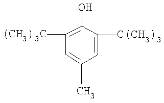 3-изомер обладает несколько большей антиокислительной активностью, чем 2-изомер. Содержание 3-изомера в товарной форме не менее 85%. Довольно устойчив к действию высоких температур, максимальный уровень – 200 мг/кг в жировой фракции продукта. Бутилгидрокситолулол (БОТ) – 2,6-ди-третбутил-4-метилфенол -(ионол)(Е-321). Один из наиболее распространенных антиокислителей. В пищевой промышленности применяется для стабилизации растительных масел, топленого масла, кулинарных жиров (Е-321); ДСД – 0,5 мг/кг массы тела человека. Максимальный уровень содержания БОТ в продукте – 100 мг/кг.