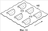 Хотя на фиг.9-14 показано использование одинаковых по конфигурации форм для производства одинаковых по форме кусков продукта, которые можно уложить друг на друга, возможно использование форм многих других конфигураций, даже комбинированных друг с другом, если требуется получить конечный продукт случайной формы, который не подлежит укладке в пачку. Например, поперечные сечения альтернативных форм могут напоминать различные участки синусоидальной кривой.
