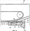 Рассмотрим снова фиг.15. Площадь поперечного сечения потока масла над расположенной в верхнем течении перегородкой 560 противня с маслом слегка увеличивается на некоторое время, когда масло 552 проходит через нижний входной транспортер 530. Таким образом, скорость масла 552 на некоторое время увеличивается, когда оно проходит через нижний входной транспортер 530. В то время как изменение скорости масла ниже по течению будет нежелательным, поскольку кусочки полуфабриката начнут обжариваться на верхнем транспортере 520, данное изменение скорости является желательным. Незначительное изменение скорости масла помогает кусочкам полуфабриката оторваться от нижнего входного транспортера 530 с тем, чтобы они могли попасть в формы на верхнем транспортере 520.