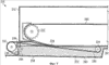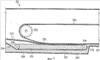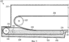 На фиг.4 показан нижний входной транспортер 230, движущийся по замкнутому контуру, существенная часть которого находится вне корпуса 212 обжарочного аппарата. Поскольку нижний входной транспортер 230 расширяется от воздействия горячего масла и растяжения, можно предусмотреть один или несколько роликов, которые могли бы перемещаться с тем, чтобы транспортер всегда оставался натянутым. Например, нижний наружный ролик 237, расположенный на входной стороне, может перемещаться к верхнему наружному ролику 238, расположенному на входной стороне, или от него, чтобы ослабить или натянуть, как требуется, нижний входной транспортер 230. Данный вариант выполнения делает возможным существенное охлаждение нижнего транспортера 230.