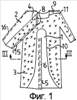 на фиг. 1 – схематический вид спереди одежды для больного согласно первому варианту выполнения настоящего изобретения;