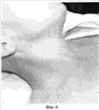 В качестве примера приводим следующее наблюдение. Больной А. 23 лет поступил в отделение 23.03.06, и.б. № 1868 с жалобами на головную боль, выделения из носа, наличие увеличенных лимфатических узлов шеи справа. При осмотре – экзофтальм, слезотечение справа, припухлость правой щечной области. При эндоскопии носа – правая половина носа сужена за счет выбухания латеральной стенки носа, эндоскоп не проходит в носоглотку, в левой половине носа слизисто-гнойное отделяемое, в носоглотке опухолевая ткань, легко кровоточащая при зондировании. На шее во IIa, III, Va уровнях – пакет увеличенных лимфатических узлов, ограниченно смещаемых при пальпации, болезненных. Диагноз: Краниоорбитофациальная опухоль справа IV ст. T4N2M0. (фиг.6). Из анамнеза: Болеет около 2 мес, лечился от хронического гайморита, экзофтальм появился последний 1 мес, направлен в отделение «Голова-Шея» Ярославской областной клинической онкологической больницы, верифицирован диагноз. Согласно составленному коллегиально с радиологом и химиотерапевтом плану лечения больному проведено 3 курса неоадъвантной полихимиотерапии по схеме: цисплатин 130 мг в.в капельно 1 день, доксорубицин 90 мг в.в. капельно 1 день, циклофосфан 800 мг в.в. капельно 1 день, емесет 16 мг, дексаметазон 20 мг, гидратация с выражение положительной динамикой. Статус после ПХТ: При эндоскопии носа справа опухоль определяется только в задних отделах перегородки в виде ткани на сошнике, слева опухоль занимает верхний носовой ход, частично выходит из среднего носового хода, носоглотка свободна. На шее справа во IIa, III уровне – 2 узла до 1,5 см в диаметре, слева – в III уровне до 1 см узел. 25.05.06 выполнена операция: Краниоорбитофациальная резекция справа. Под ЭИН разрез по Муру с окаймлением орбиты слева и рассечением верхней губы. Откинут кожный лоскут. При ревизии: верхнечелюстная пазуха справа заполнена кистами, опухоль распространяется на решетки справа, инфильтрирует носовую перегородку, в орбиту не прорастает, прорастает в переднюю черепную ямку через ситовидную пластинку. Выполнена парциальная резекция верхней челюсти с резекцией носовой перегородки в ее задних отделах. Опухолевое поражение по твердой мозговой оболочке иссечено в пределах визуально здоровой оболочки с удалением ситовидной пластинки. Операция – модифицированная радикальная шейная диссекция справа (тип III). Модифицированный указанный в методике разрез кожи правой половины шеи от мочки уха до ключицы. Субплатизмально рассепарованы лоскуты с оставлением кивательной мышцы на заднем лоскуте. Мобилизован основной сосудисто-нервный пучок шеи. При ревизии: по ходу внутренней яремной вены увеличенные явно метастатические лимфатические узлы до 1×2 см в III уровне. Мобилизована, иссечена клетчатка и лимфатические узлы всех уровней шеи с включением в препарат нижнего полюса околоушной слюнной железы, подчелюстной слюнной железы, с оставлением внутренней яремной вены и добавочного нерва. Гемостаз биполярной коагуляцией, прошиванием сосудов. Активное дренирование раны, послойное ушивание раны. Асептическая повязка. Заживление раны – первичным натяжением. Швы сняты на 10 сутки. Послеоперационное гистологическое исследование № 15411 – 37 от 19.06.06 в верхнечелюстной пазухе, решетчатом лабиринте справа, латеральной стенка носа, основной пазухе – рост мезенхимально