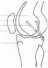 Поясняем существенные отличительные признаки предлагаемого способа. Предварительное выполнение разреза длиной 1,0 см в области латерального надмыщелка бедра и разреза длиной 1,0 см в заднелатеральном отделе сустава на 1,0 см ниже суставной щели в проекции сухожилия подколенной мышцы и заднелатерального отдела капсульно-связочного аппарата обеспечивает минимальную инвазивность и исключает дополнительную травматизапию окружающих тканей.