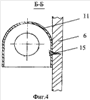 Сламывающиеся полы 12 в тамбурах 6 расположены в шахматном порядке относительно друг друга, тем самым снижая стрессовые факторы при погружении овец в дезинфицирующий раствор купочной ванны 7. U-образные корпуса светильников 11 (фиг.4) закреплены по бокам и сверху тамбуров 6 посредством винтов 15.