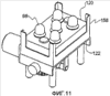 На фиг.10 показана верхняя пластина 120 в ее самом верхнем положении, то есть когда массирующие выступы 98 находятся в самом верхнем положении. На фиг.11 показана верхняя пластина 120 в ее самом нижнем положении, то есть когда массирующие выступы 98 находятся в самом нижнем положении.