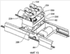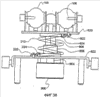Подъемник также включает пружину 912 растяжения, зафиксированную между верхней пластиной 820 и нижней пластиной 822. Гидравлический цилиндр 900 преодолевает усилие, прилагаемое пружиной растяжения, для перемещения верхней пластины 820. Гидравлический цилиндр 900 может приводиться в действие сжатым воздухом или гидравлическим маслом под давлением. Пружина 912 растяжения создает нагружающий эффект при подъеме или опускании подъемника 720. Таким образом, пружина 912 растяжения предотвращает резкий подъем верхней пластины 820 гидравлическим цилиндром 900 и облегчает точное перемещение верхней пластины 820. Верхняя пластина 820 перемещается усилием, прилагаемым гидравлическим цилиндром 900, минус усилие, прилагаемое пружиной 912 растяжения.