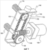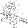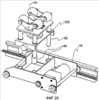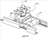 Как показано на фиг. 2 и фиг. 3, направляющий элемент 26, соответствующий варианту с желобчатым шкивом, включает шнур 28, пару шкивов 30 и электродвигатель 32 привода шкива, который приводит в действие один из шкивов 30. Шкивы 30 соединены шнуром 28 и, соответственно, установлены в передней концевой части 34 и в задней концевой части 36 несущей рамы 12. В предпочтительном варианте электродвигатель 32 привода шкива расположен так, что он соединен со шкивом 30, находящимся в задней концевой части 36 несущей рамы 12. В этой конструкции заданная часть 29 шнура 28 неподвижно прикреплена к ползуну 18 таким образом, что вращение шкива вызывает горизонтальное возвратно-поступательное движение ползуна 18. Предпочтительно шкивы 30 повернуты на 90 градусов относительно друг друга для облегчения горизонтального возвратно-поступательного движения ползуна 18 с улучшением управляемости возвратно-поступательного движения ползуна.