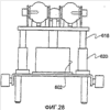Как показано на фиг.37-42, подъемник 720 имеет верхнюю пластину 820 и нижнюю пластину 822, гидравлический цилиндр 200, прикрепленный к нижней пластине 822, и компрессор 902, подающий жидкость под давлением в гидравлический цилиндр 900. Гидравлический цилиндр 900 имеет шток 904 цилиндра, соединенный с верхней пластиной 820. Шток 904 цилиндра перемещает верхнюю пластину 820 вверх и вниз.