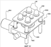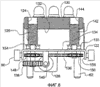 От углов прямоугольной нижней пластины 122 отступают вверх четыре угловых направляющих 158. Угловые направляющие 158 направляют и защищают четыре угла прямоугольной верхней пластины 120, когда она движется вверх и вниз.