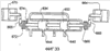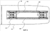 Между тем, на фиг. 4, 5 и 6 показан вариант осуществления изобретения с зубчатой рейкой для совершения горизонтального возвратно-поступательного движения ползуна 18. Как здесь показано, направляющий элемент 26 в варианте выполнения в форме зубчатой рейки включает пару боковых зубчатых реек 40, расположенных параллельно друг другу и продольно относительно несущей рамы 12, роликовую шестерню 42, ориентированную перпендикулярно боковым зубчатым рейкам 40, и электродвигатель 44 привода роликовой шестерни, прикрепленный к ползуну для приведения в действие роликовой шестерни 42. Роликовая шестерня 42 с возможностью вращения соединена с ползуном 18 и с возможностью качения установлена на боковых зубчатых рейках 40.