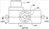 Подъемник 720 также включает направляющий ствол 906, прикрепленный между штоком 904 цилиндра и верхней пластиной 820, и направляющую опору 908, которая направляет направляющий ствол 906. Направляющая опора 908 прикреплена к нижней пластине 822. Как показано на фиг.40 и 41, направляющая опора 908 имеет направляющее отверстие 910, которое принимает направляющий ствол 906. Направляющий ствол 906 имеет многоугольное сечение, и направляющее отверстие 910 имеет такое же многоугольное сечение. Предпочтительно направляющий ствол 906 и, таким образом, направляющее отверстие 910 имеют квадратное сечение. Таким образом, подъемник 720 не требует отдельных направляющих элементов, которые направляют вертикальное движение массирующих выступов 800, поскольку квадратный направляющий ствол 906 и квадратное направляющее отверстие 910 допускают движение верхней пластины 820 только в вертикальном направлении. Вращение верхней пластины 820 невозможно.