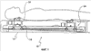 От нижней внешней поверхности 136 подъемника 20 отступают вниз удлиненные направляющие 62, и на ползуне 18 сформированы отступающие вверх направляющие гильзы 64 для приема с возможностью освобождения удлиненных направляющих 62 для стабилизации накатывающегося движения роликов подъемника 20 по роликовым “горкам” 50. Предпочтительно удлиненные направляющие 62 имеют форму пальцев.