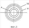Внешняя поверхность 6 переходника снабжена одним или более выступами 9, причем каждый такой выступ 9 проходит в радиальном направлении наружу от внешней поверхности переходника. Как показано на фиг.2, выступ 9 может иметь форму окружного выступа, занимая 360 градусов внешней поверхности 6 переходника.