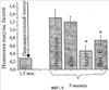 В серии с однократным внутривенным введением SkQ1 после двукратного увеличения скорости потока перфузионное давление в обеих группах повысилось примерно одинаково (120-125 мм рт.ст.). Введение Н2O2 оказывало обычное двухфазное действие – начальное снижение ПД сменялось его повышением. В контрольной группе минимальный уровень ПД составил 95+5 мм рт.ст., а в группе получавших SkQ1 – 77+2 мм рт.ст. (р<0,02). Максимальное снижение ПД по сравнению с исходным уровнем до введения в среднем составило 28+3 мм рт.ст и -43+5 мм рт.ст., соответственно (р<0,05). В серии с длительным приемом SkQ максимальное снижение ПД в среднем в контрольной группе составило 21+5 мм рт.ст., а в группе получавших SkQ1 38+5 мм рт.ст. (р<0,03). Достоверная разница между группами сохранялась и в конце введения Н2O2 5+6 мм рт.ст. и 29+6 мм рт.ст. соответственно (р<0,03). Таким образом, как однократное, так и длительное применение SkQ1 потенцировало начальный вазодилататорный эффект Н2O2-. Кроме того, при длительном применении SkQ1 уменьшалось токсическое действие Н2O2 на коронарные сосуды.