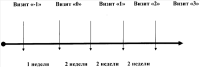 электрокардиография, УЗИ органов брюшной полости (печени, желчного пузыря, поджелудочной железы). По всем перечисленным показателям проводится оценка безопасности лечения. Временные интервалы между визитами «1» и «2», «2» и «3» составляют 2 недели.