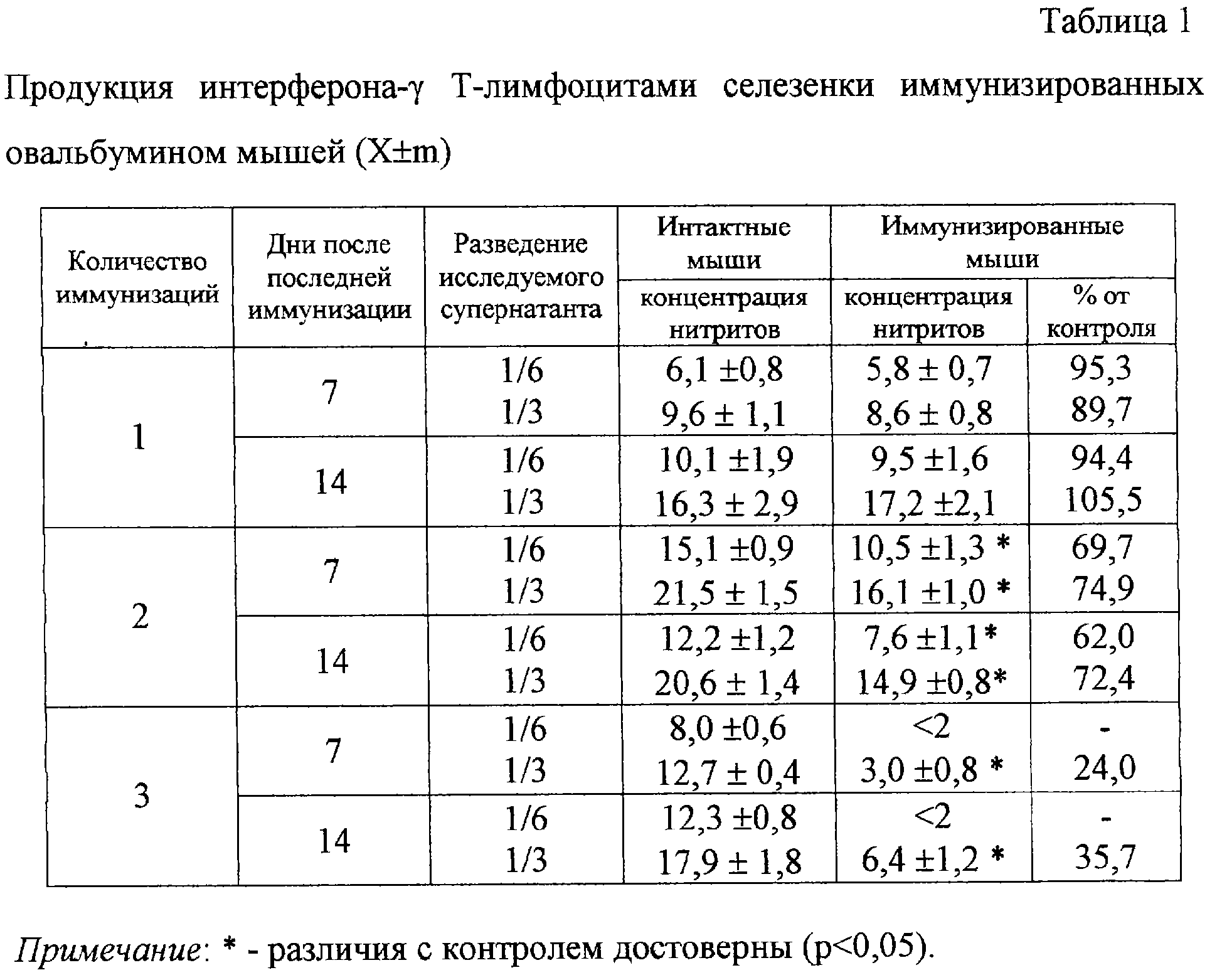 , а также по способности полученных таким образом лимфоцитов индуцировать отек при введении их в смеси с антигеном (овальбумином) в подушечку лапы интактных сингенных мышей.