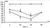 На фиг.3 представлены результаты подсчета количества патологических форм сперматозоидов у крыс контрольной группы, животных, получавших вепезид и вепезид на фоне введения экстракта левзеи сафлоровидной ( контроль, вепезид, вепезид + левзея. Белой стрелкой отмечены точки, имеющие достоверные различия по сравнению с контролем при Р 0,05, черной – по сравнению с группой животных, получавших вепезид; при Р 0,05).
