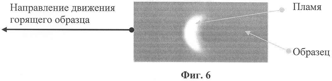 – ведется наблюдение за горением движущегося образца, фиксируются форма образца и размещение зоны его горения в средней по высоте плоскости камеры сгорания;