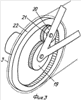 На фиг.3 зубчатое колесо 19, второе зубчатое колесо 20, вторая ось 21 и зубчатое колесо в виде кольца 22 обеспечивают преобразование активного вращательного движения мышц, передающегося через шестереночно-цепную передачу 2 на шестерню 3 и через нее на жестко сопряженное с ней зубчатое колесо в виде кольца 22, в противоположно направленное вращательное движение втулки колеса 8.