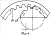 На фиг.4 зацепление зубчатого колеса 20 с эвольвентным профилем зубцов 23 и зубчатого колеса в виде кольца 22 с зубцами обращенного эвольвентного профиля 24 обеспечивает оптимальную передачу максимально возможного вращательного момента в течение всего времени передачи вращения.