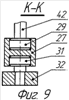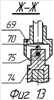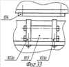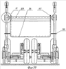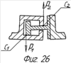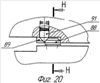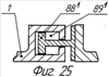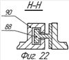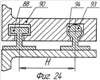 на фиг.24 – разрез по Н-Н (фиг.20), повернуто и увеличено – устройство для блокировки коньков дополнительно оснащено штырем на левом коньке и ответным ему пазом, выполненным в основании правого конька на высоте «Н», отличной от высоты расположения выступа и ответного ему паза, изображенных на фиг.20.