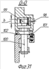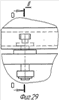 на фиг.29-31 – устройство для блокировки, выполненное в виде зубчатой рейки в основании одного конька и шестерни, установленной на основании другого конька, при этом шестерня оснащена механизмом дискретного поворота на определенные углы в виде шариковой защелки; на фиг.29 – место II (фиг.19), увеличено, в момент блокировки; на фиг.30 – то же в момент, когда левый конек смещен вперед относительно правого конька; на фиг.31 – разрез по O-O (фиг.29);