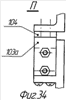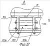 на фиг.32-34 – устройство для блокировки в виде магнита, закрепленного на основании одного конька, и якоря в основании другого конька; на фиг.32 – место II (фиг.19), увеличено, в момент блокировки; на фиг.33 – то же в момент, когда коньки друг от друга находятся на небольшом расстоянии в направлении, перпендикулярном направлению движения; на фиг.34 – вид II (фиг.32);